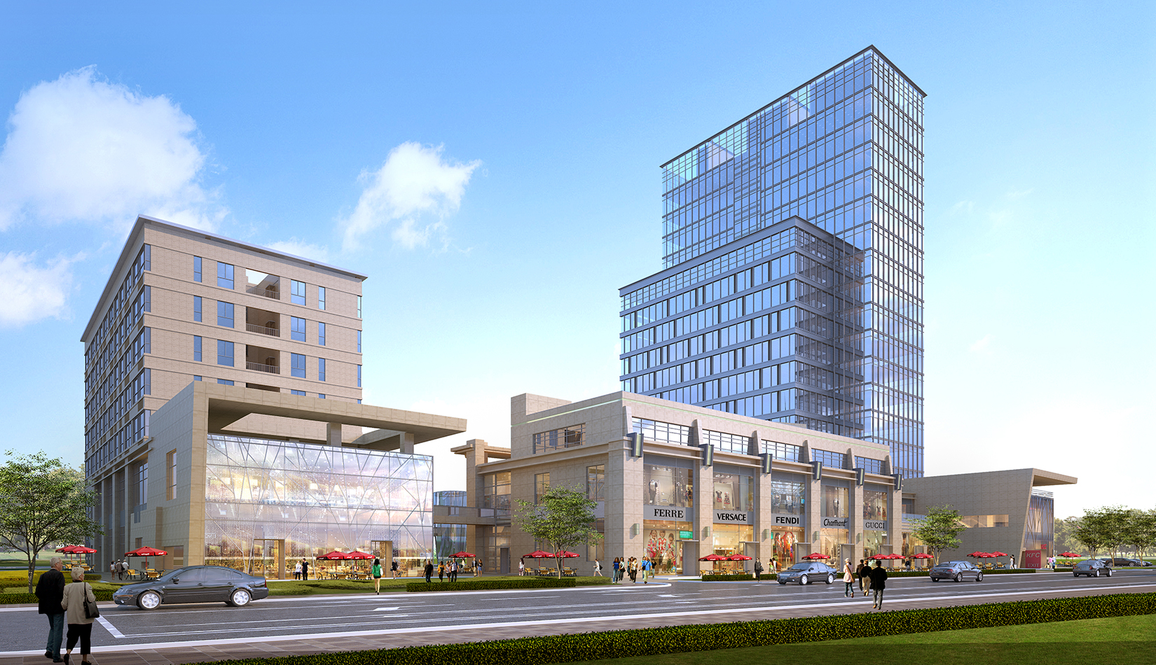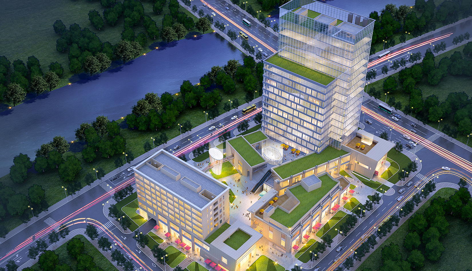 本項(xiàng)目包含商業(yè)、酒店、公寓、辦公、電影院等功能,作為一個(gè)商業(yè)綜合體滿足中德生態(tài)園周邊居民的生活、