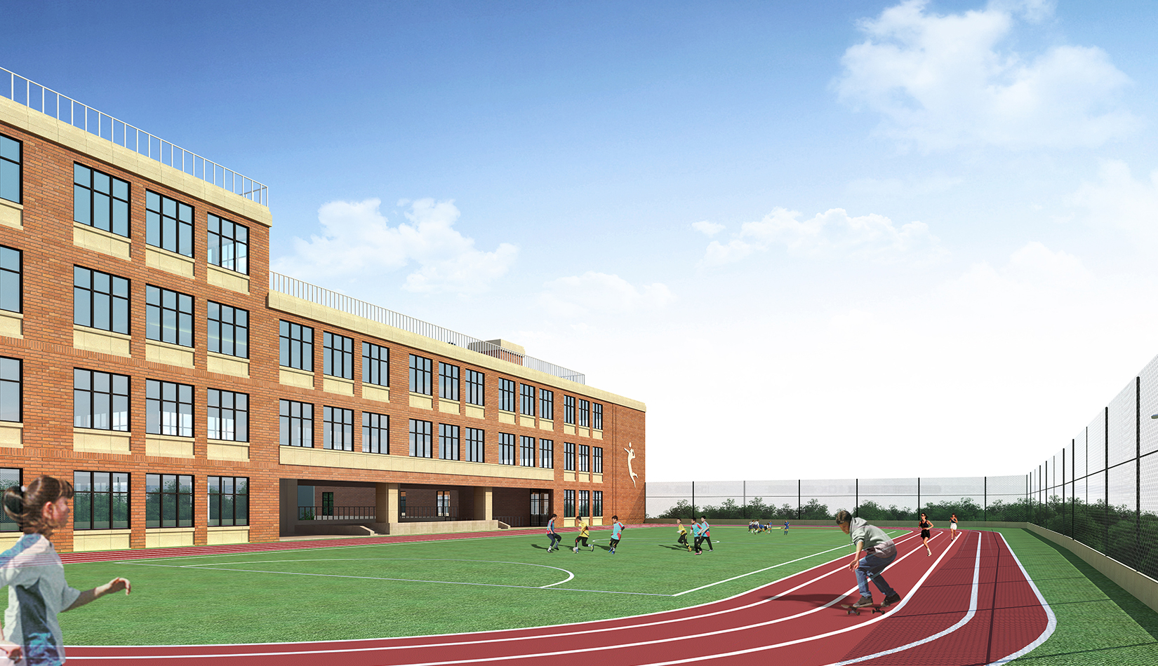 該項目的設(shè)計延續(xù)區(qū)域肌理,與區(qū)域城市肌理相融合,提高區(qū)域環(huán)境。立面設(shè)計考慮市南區(qū)及鎮(zhèn)江路原有學校風格,采用學院派建筑風格,塑造古典人文氛圍,校園墻體通過磚的變化設(shè)計文化墻,將文化傳承與精神傳承融合在建筑之中。根據(jù)地勢和日照進行功能布局排列,下沉庭院、連廊和架空設(shè)計的鄰近操場的校園環(huán)境設(shè)計,一方面塑造了豐富多彩的校園環(huán)境,另一方面充分保證了室內(nèi)環(huán)境的采光,讓孩子們更多地享受陽光。