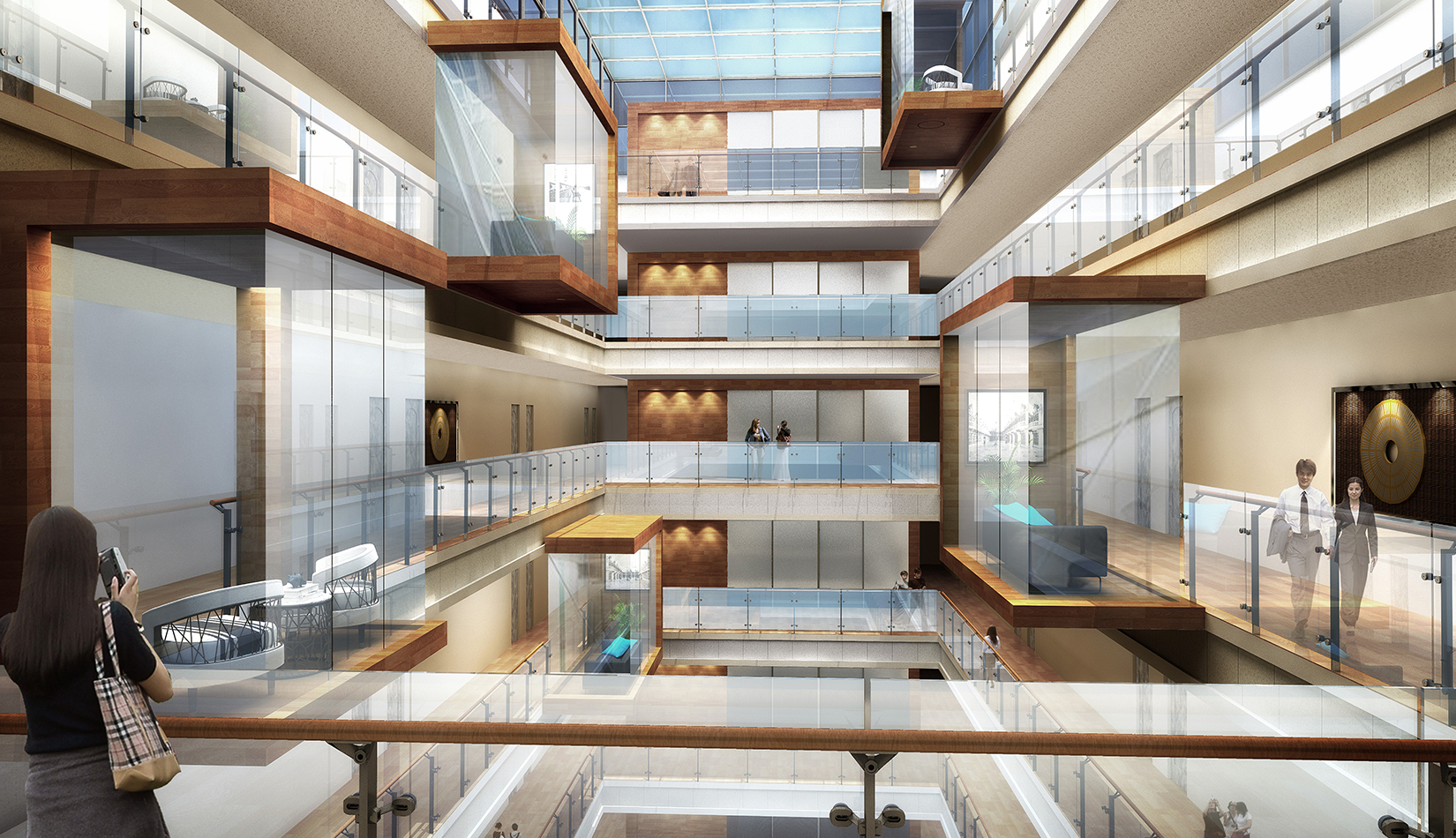 建筑圍合共享的中間庭院,庭院采用新中式風(fēng)格,屋頂設(shè)計屋頂花園,靜謐淡雅,為人們提供一個安靜休憩空間。