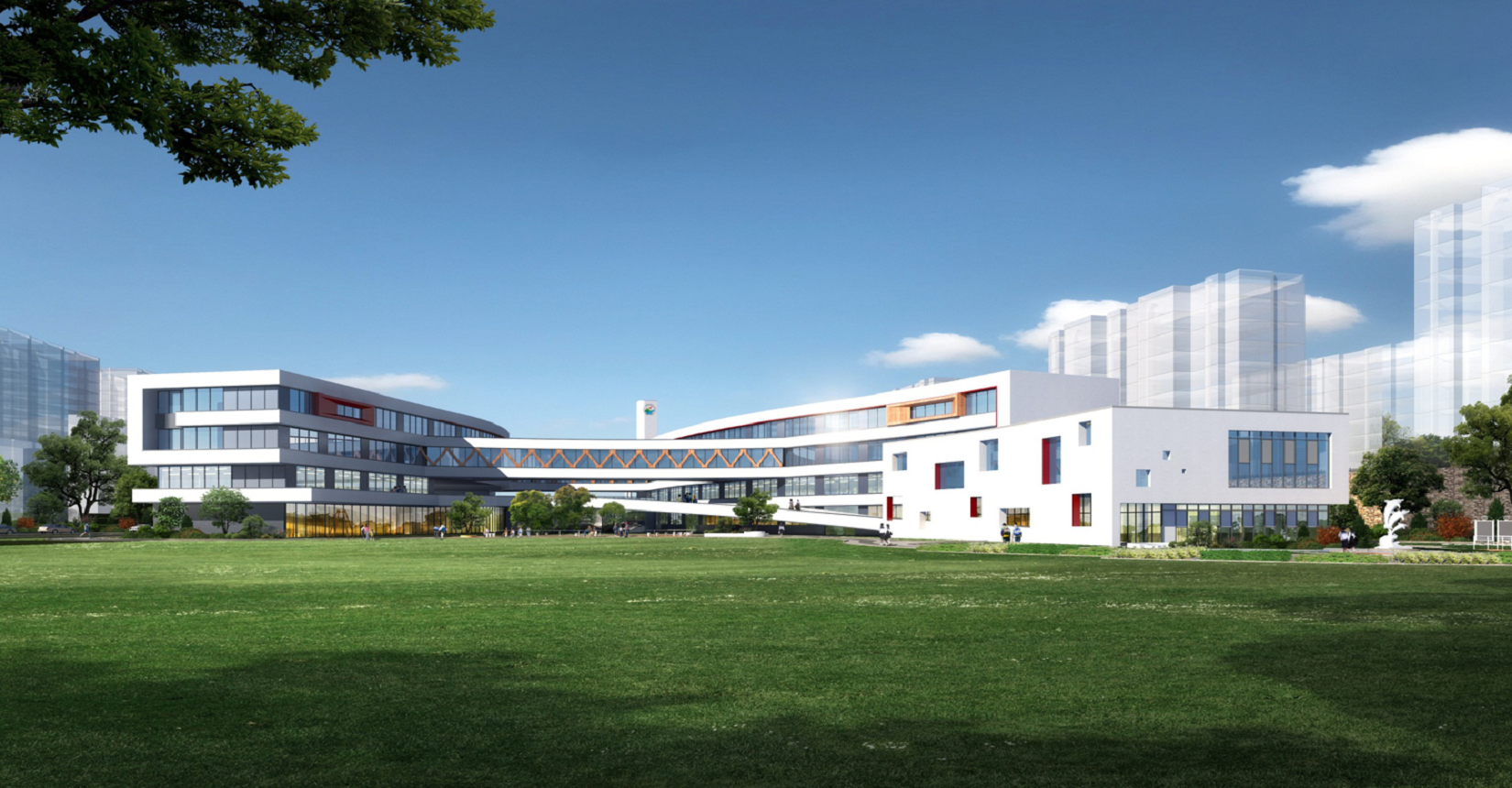 校園規(guī)劃采用曲線手法,營造流水姿態(tài),將東側(cè)山脈與西側(cè)河流連接在一起。設(shè)計(jì)現(xiàn)代化“山水”校園,使學(xué)生在自然中成長。營造活水發(fā)源的“源頭”意境,寓意教育為人類文化長河的源頭,呼應(yīng)學(xué)?!霸搭^”文化。曲線舒展的形體,整體采用白色色調(diào),局部以紅黃色進(jìn)行點(diǎn)綴,風(fēng)格純潔又不失活潑。